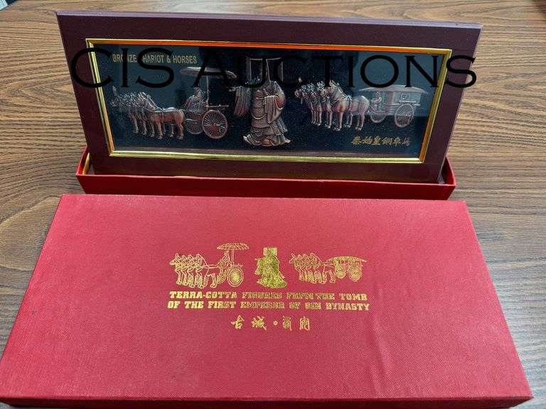 DESK SET- BRONZE CHARIOT & HORSES